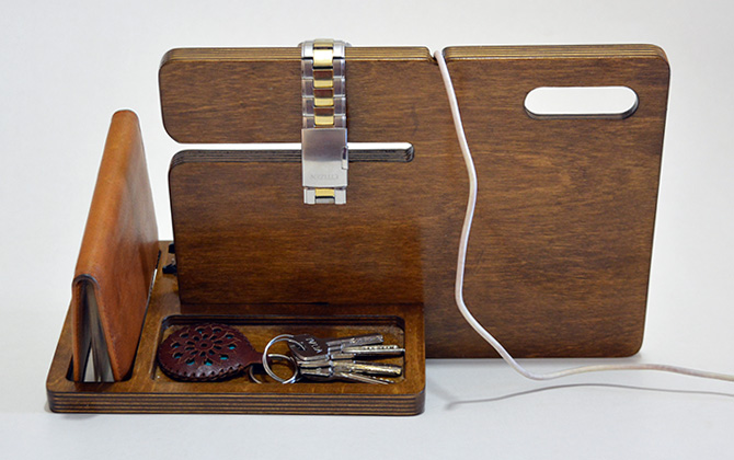 شامل: نگهدارنده موبایل نگهدارنده ساعت و دستبند جای کیف جیبی جای عینک جاکلیدی و یا لوازم جانبی قابلیت تغییر در رنگ و کاربری در تیراژهای بالا