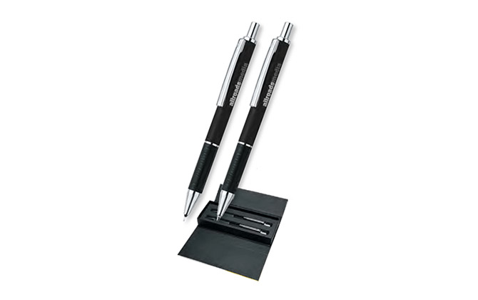 شناسه کالا: ۶۳۴۲توضیحات کالا:خودکار و اتود تبلیغاتی سناتور جنس: فلزی رنگبندی: داردگارانتی: داردروش چاپ: لیزر