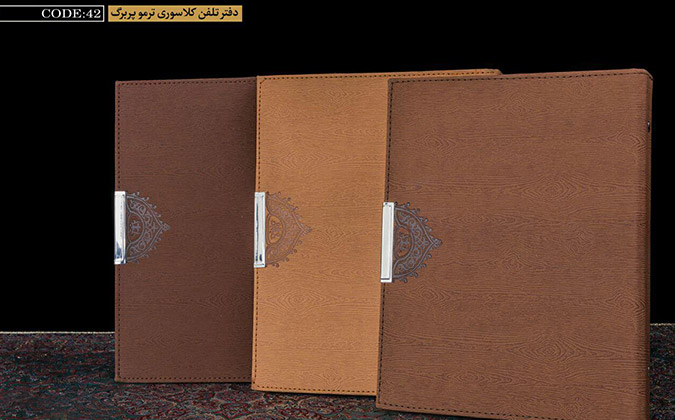 کد محصول: TC-42 جنس جلد: ترمو نوع صحافی: فنر دوبل قطع: دفتر تلفن وزیری کلاسوری تعداد در کارتن: ۱۶ عدد