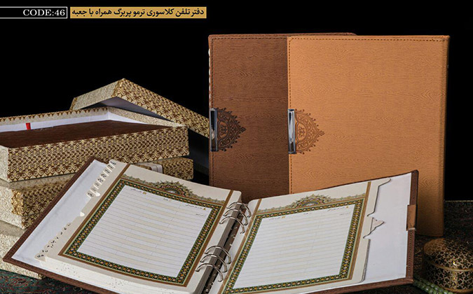 کد محصول: TC-46 جنس جلد: ترمو نوع صحافی: کلاسوری قطع: دفتر تلفن وزیری کلاسوری تعداد در کارتن: ۱۶ عدد