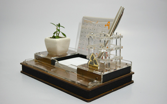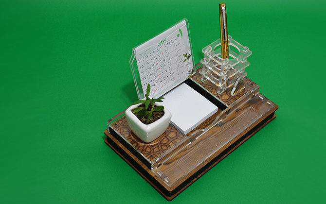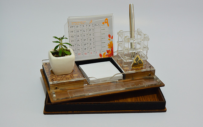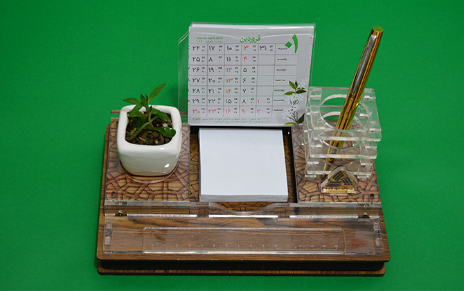 ست رومیزی چوبی با گل و جای قلم و خطکشS-304
