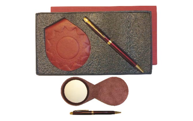 توضیحات کالا: ست آینه چرم طبیعی و خودکار فلزی