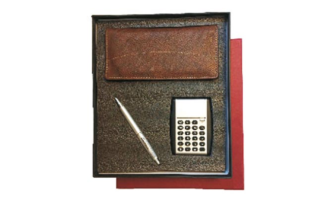 توضیحات کالا: ست کیف پالتویی طرح چرم ماشین حساب و خودکار