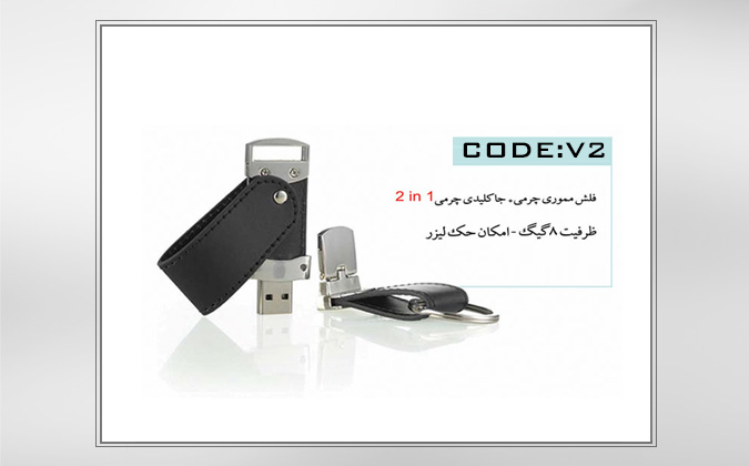 فلش مموری تبلیغاتی و جاکلیدی چرمی  ۸GB- کد V2
