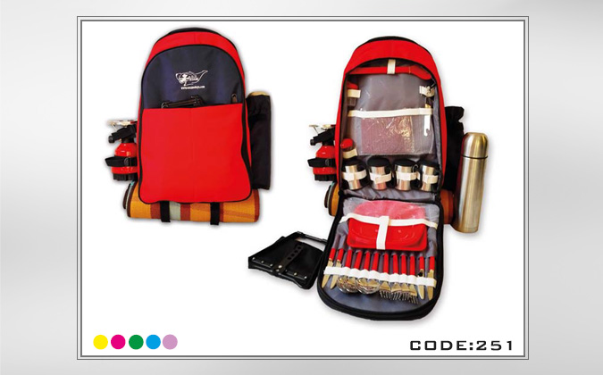 تجهیزات: ۱- کوله پشتی مسافرتی ،با تجهیزات داخل شامل: – ست غذاخوری – لیوان استیل – بالشت بادی – قوطی بازکن